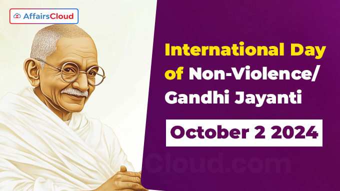 • 2 अक्टूबर 2024 महात्मा गांधी की 155वीं जयंती और 18वां अंतर्राष्ट्रीय अहिंसा दिवस है।