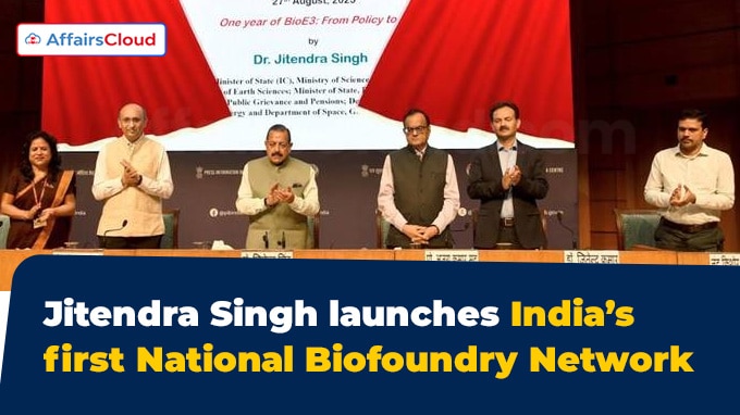 27 अगस्त, 2025 को, केंद्रीय मंत्री जितेंद्र सिंह, विज्ञान और प्रौद्योगिकी मंत्रालय (MoS&T) ने नई दिल्ली, दिल्ली में राष्ट्रीय मीडिया केंद्र में आयोजित एक कार्यक्रम में BioE3 नीति के एक वर्ष को चिह्नित करते हुए भारत का पहला ‘नेशनल बायोफाउंड्री नेटवर्क‘ और ‘बायोटेक्नोलॉजी फॉर इकोनॉमी, एनवायरनमेंट एंड एम्प्लॉयमेंट (BioE3) चैलेंज फॉर यूथ’ लॉन्च किया।