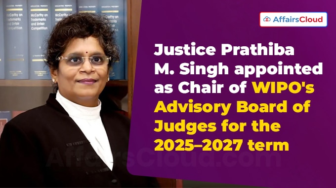 21 अक्टूबर, 2025 को, न्यायमूर्ति प्रतिभा मनिंदर (M) दिल्ली उच्च न्यायालय (HC) के सिंह को WIPO द्वारा अपने न्यायिक संस्थान के माध्यम से 2025-2027 के कार्यकाल के लिए विश्व बौद्धिक संपदा संगठन (WIPO) के न्यायाधीशों के सलाहकार बोर्ड के अध्यक्ष के रूप में नियुक्त किया गया था । यह भारत के लिए एक ऐतिहासिक मील का पत्थर है, क्योंकि वह इस अंतरराष्ट्रीय संस्था का नेतृत्व करने वाली पहली भारतीय हैं।
