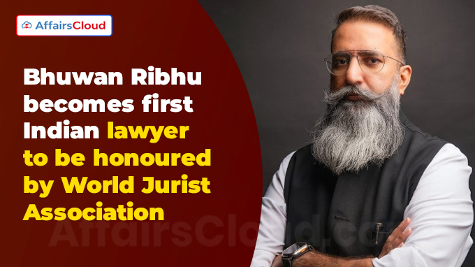 मई 2025 में, एक प्रसिद्ध भारतीय बाल अधिकार वकील और कार्यकर्ता, भुवन रिभु को वर्ल्ड ज्यूरिस्ट एसोसिएशन (WJA) द्वारा ‘मेडल ऑफ ऑनर‘ से सम्मानित किया गया, जो यह मान्यता प्राप्त करने वाले पहले भारतीय वकील बने। उन्हें उत्तरी अमेरिका (NA) के एक देश डोमिनिकन गणराज्य में 4 से 6 मई, 2025 तक आयोजित वर्ल्ड लॉ कांग्रेस (WLC) 2025 के दौरान इस सम्मान से सम्मानित किया गया।