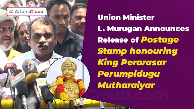 23 मई 2025 को, केंद्रीय राज्य मंत्री (MoS) लोगनाथन मुरुगन, संसदीय मामलों के मंत्रालय (MPA) ने तमिलनाडु (TN) के तिरुचिरापल्ली में सरकारी स्मारक परिसर में राजा की 1,350वीं जयंती समारोह में एक तमिल राजा, पेरारासर पेरुम्पिडुगु मुथरैयार के सम्मान में एक स्मारक डाक टिकट जारी करने की घोषणा की।