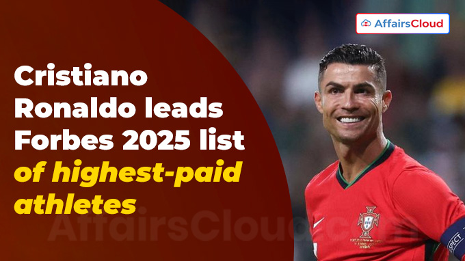 मई 2025 में, फोर्ब्स ने  पुर्तगाली  फुटबॉल खिलाड़ी क्रिस्टियानो रोनाल्डो के साथ दुनिया के सबसे अधिक भुगतान पाने वाले एथलीटों की 2025 की सूची जारी की, जिसमें लगातार  तीसरे वर्ष शीर्ष स्थान हासिल किया और  मई 2024 और मई 2025 के बीच कुल कमाई 275 मिलियन अमरीकी डालर की कुल कमाई की।