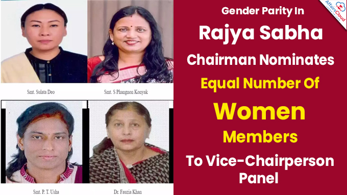 - राज्यसभा (भारतीय संसद का ऊपरी सदन) के इतिहास में पहली बार पैनल में महिला सदस्यों को समान प्रतिनिधित्व दिया गया है।