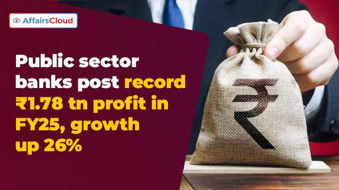 सार्वजनिक क्षेत्र के बैंकों (PSB) का संचयी लाभ वित्तीय वर्ष 2024-25 (FY25) में 1.78 लाख करोड़ रुपये के रिकॉर्ड स्तर तक बढ़ गया, जो पिछले वर्ष की तुलना में 26% की वृद्धि दर्ज करता है। सभी 12 PSB ने FY24 में कुल 1.41 लाख करोड़ रुपये का लाभ अर्जित किया था.