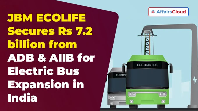 गुरुग्राम (हरियाणा) स्थित JBM ECOLIFE मोबिलिटी प्राइवेट लिमिटेड, JBM ऑटो लिमिटेड की एक सहायक कंपनी, ने सकल लागत अनुबंध (GCC) मॉडल के तहत भारत में इलेक्ट्रिक बस सेवाओं को बढ़ाने के लिए एशियाई विकास बैंक (ADB) और एशियाई अवसंरचना निवेश बैंक (AIIB) से 7.2 बिलियन रुपये का वित्तपोषण प्राप्त किया है।