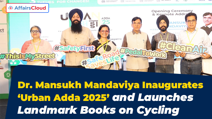 On June 3, 2025, Union Minister Dr. Mansukh Mandaviya, Ministry of Labour & Employment (MoL&E), Ministry of Youth Affairs and Sports (MYAS) inaugurated the ‘Urban Adda 2025 conclave’, held from June 3 to 5, 2025 and launched Landmark Books on cycling at India Habitat Centre in New Delhi, Delhi.
