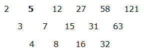 16 + 4² + 1= 33…….. - 4, 20, 120, 595, 2376 7125