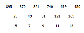 120*5 -5 = 595. - 64, 60, 75, 103, 168, 294