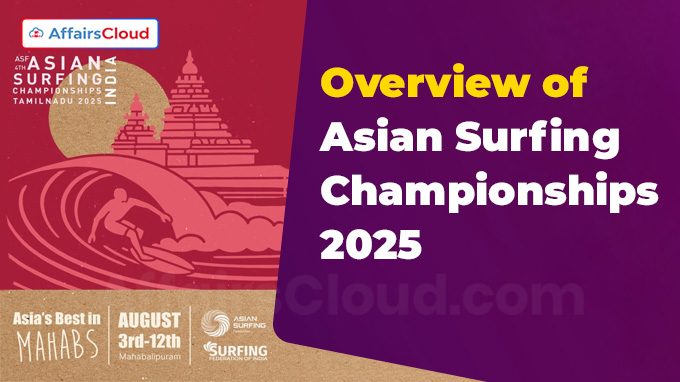 The Asian Surfing Championships (ASC) 2025, held from August 3 to 12, 2025 in Mahabalipuram, Tamil Nadu, marking India’s debut as host. The event served as the final qualification event for the 2026 Asian Games in Aichi-Nagoya, Japan.