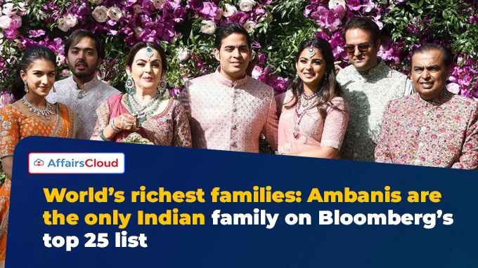On December 16, 2025, Bloomberg released its annual report titled “Bloomberg-World’s Richest Families 2025”, tracking the 25 wealthiest family fortunes globally and their aggregate wealth growth. As per the report, the Ambani family, remained 8th with an estimated net worth of about USD 105.6 billion, is the only Indian family featured in the list.