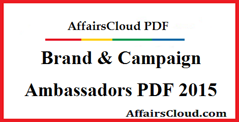 Dear Readers,We collected the list of Brand & Campaign Ambassadors 2015 in a PDF Format. This PDF will provides you insight into current affair events that are important for competitive exams.