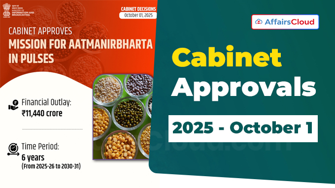 In September 2025, the Union Cabinet chaired by Prime Minister (PM) Narendra Modi, has approved the approval the following proposals: