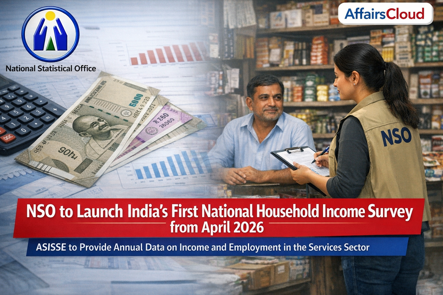 NSO to Launch India’s First-Ever NHIS & ASISSE from April 2026In January 2026, the National Statistical Office (NSO), under the Ministry of Statistics & Programme Implementation (MoSPI), announced plans to conduct India’s first-ever National Household Income Survey (NHIS) and Annual Survey of Incorporated Service Sector Enterprises (ASISSE), both scheduled to run for one year starting April 2026.