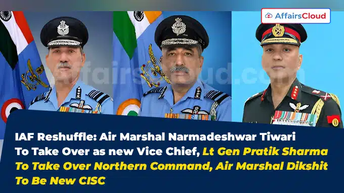 New Vice Chief: Air Marshal Narmadeshwar Tiwari assumed the role of 49th Vice Chief of the Air Staff (VCAS) on 1st May 2025, succeeding Air Marshal Sujeet Pushpakar Dharkar, who retired on 30th April 2025 after a 40-year career.
