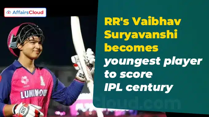 In April 2025, Rajasthan Royals’ (RR’s) Vaibhav Suryavanshi (14 year old) has became the youngest player to score century (100 runs) in the Indian Premier League (IPL) history, reaching the mark in just 35 balls against Gujarat Titans (GT) during IPL 2025 at Sawai Mansingh Stadium, Jaipur, Rajasthan.