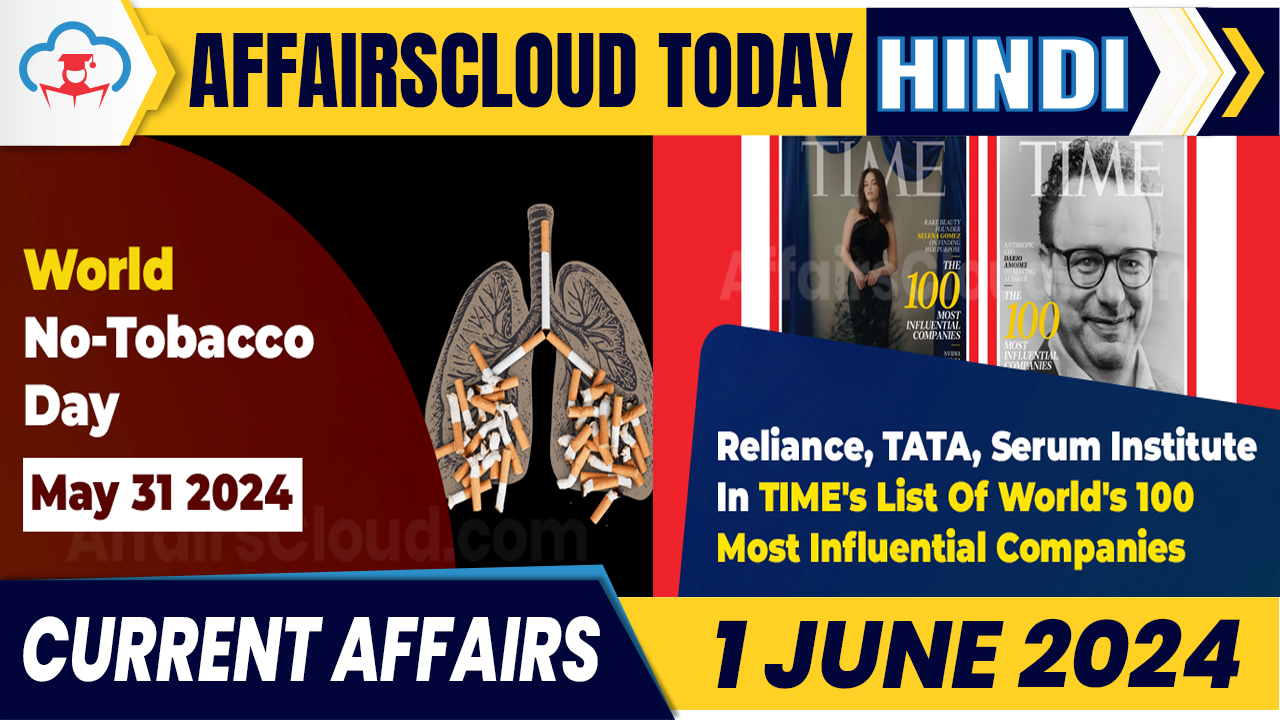 लो दोस्तों, affairscloud.com में आपका स्वागत है। हम यहां आपके लिए 1 जून 2024 के महत्वपूर्ण करंटअफेयर्स को विभिन्न अख़बारों जैसे द हिंदू, द इकोनॉमिक टाइम्स, PIB, टाइम्स ऑफ इंडिया, इंडिया टुडे, इंडियन एक्सप्रेस, बिजनेस स्टैंडर्ड,जागरण से चुन करके एक अनूठे रूप में पेश करते हैं। हमारे Current Affairs से आपको बैंकिंग, बीमा, UPSC, SSC, CLAT, रेलवे और अन्य सभी प्रतियोगी परीक्षाओं में अच्छे अंक प्राप्त करने में मदद मिलेगी