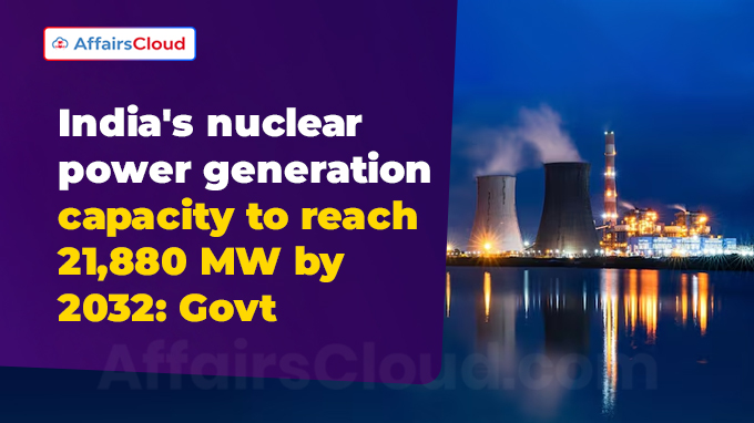 In December 2025, the Government of India (GoI) announced that India’s nuclear power generation capacity is expected to increase from the existing 8,780 MegaWatt (MW) to 9,480 MW by the end of Financial Year 2025-26 (FY26) i.e. on March 31, 2026; 13,480 MW (by FY30) and 21,880 MW (by FY32).