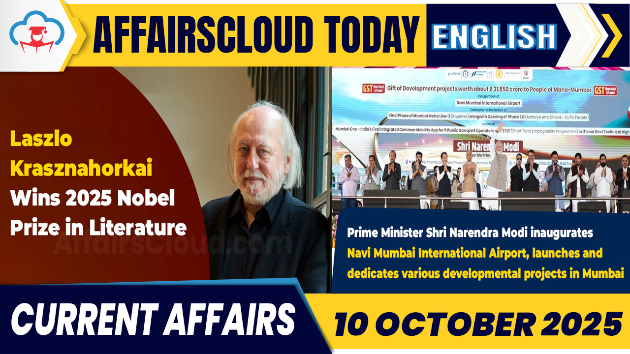 We are here for you to provide the important Recent and Latest Current Affairs 10 October 2025, which have unique updates of Latest Current Affairs 2025 events from all newspapers such as The Hindu, The Economic Times, PIB, Times of India, PTI, Indian Express, Business Standard and all Government official websites.