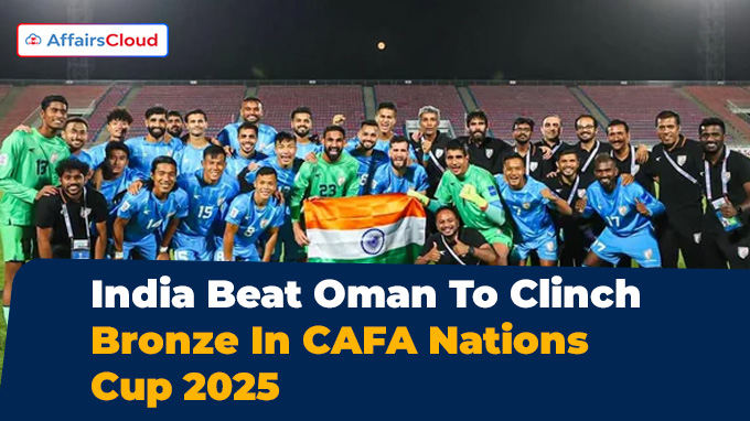Third-place: Indian national football team (led by Gurpreet Singh Sandhu), making its debut appearance in the CAFA Nations Cup, secured the bronze medal by defeating Oman 3-2 on penalties in a thrilling third-place play-off that ended 1–1.