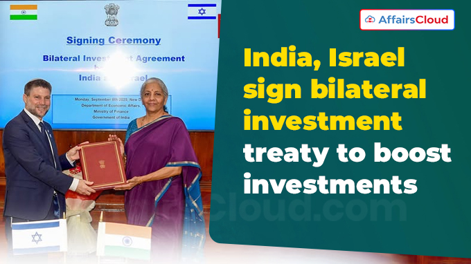 Signatories: The agreement was signed in New Delhi, Delhi, by Union Minister Nirmala Sitharaman, Ministry of Finance (MoF) and Bezalel Smotrich, Finance Minister (FM) of Israel, who is on a 3-day official visit to India, from September 08 to September 10, 2025.