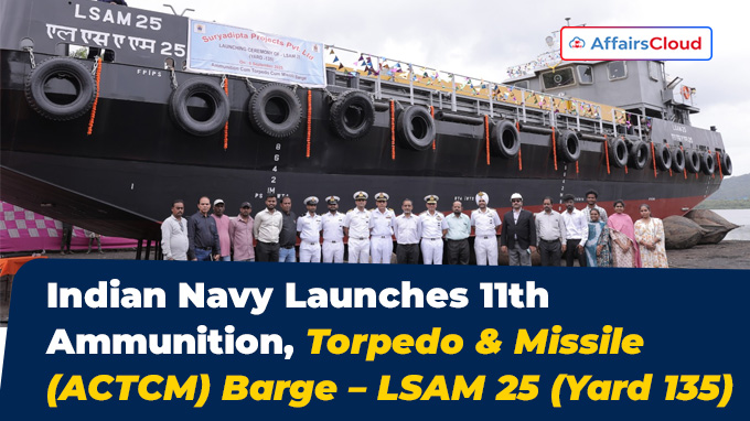 | Indian Navy Launches 11th ACTCM Barge-LSAM 25 (Yard 135) in Thane, Maharashtra |