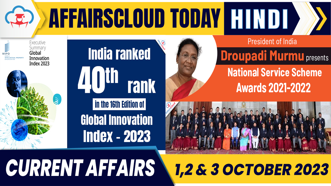 लो दोस्तों, affairscloud.com में आपका स्वागत है। हम यहां आपके लिए 1,2 & 3 अक्टूबर 2023 के महत्वपूर्ण करंट अफेयर्स को विभिन्न अख़बारों जैसे द हिंदू, द इकोनॉमिक टाइम्स, पीआईबी, टाइम्स ऑफ इंडिया, इंडिया टुडे, इंडियन एक्सप्रेस, बिजनेस स्टैंडर्ड,जागरण से चुन करके एक अनूठे रूप में पेश करते हैं। हमारे Current Affairs से आपको बैंकिंग, बीमा, यूपीएससी, एसएससी, सीएलएटी, रेलवे और अन्य सभी प्रतियोगी परीक्षाओं में अच्छे अंक प्राप्त करने में मदद मिलेगी