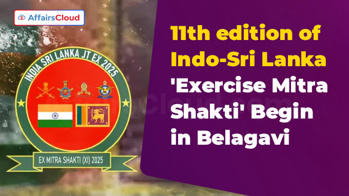 In November 2025, the 11th edition of the India–Sri Lanka Joint Military Exercise ‘Mitra Shakti’ commenced at the Foreign Training Node, Belagavi, Karnataka, and will continue till 23rd November 2025.