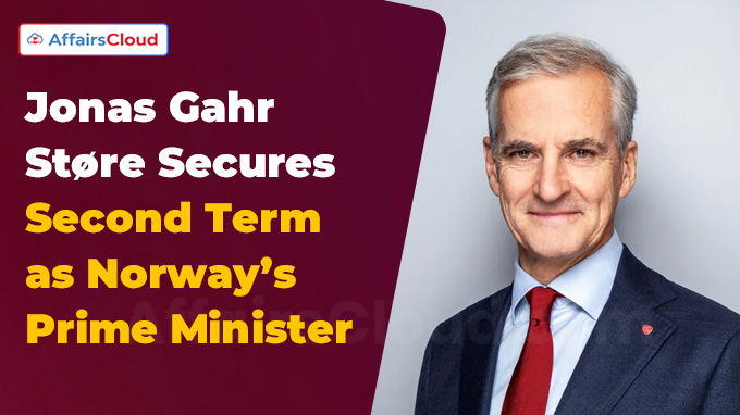 Jonas Gahr Store Secured 2nd Consecutive Term as Norway’s PMIn September 2025, Jonas Gahr Støre, the leader of Norway’s ruling Labour Party, has secured a 2nd consecutive term as Prime Minister (PM) of Norway, following the 2025 parliamentary elections held on September 8, 2025.