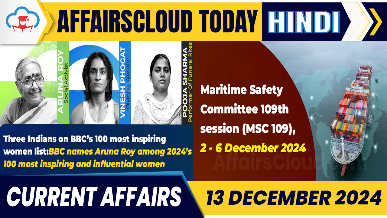 दोस्तों, affairscloud.com में आपका स्वागत है। हम यहां आपके लिए 13 दिसंबर 2024 के महत्वपूर्ण करंटअफेयर्स को विभिन्न अख़बारों जैसे द हिंदू, द इकोनॉमिक टाइम्स, PIB, टाइम्स ऑफ इंडिया, इंडिया टुडे, इंडियन एक्सप्रेस, बिजनेस स्टैंडर्ड,जागरणसे चुन करके एक अनूठे रूप में पेश करते हैं। हमारे Current Affairs से आपको बैंकिंग, बीमा, UPSC, SSC, CLAT, रेलवे और अन्य सभी प्रतियोगी परीक्षाओं में अच्छे अंक प्राप्त करने में मदद मिलेगी