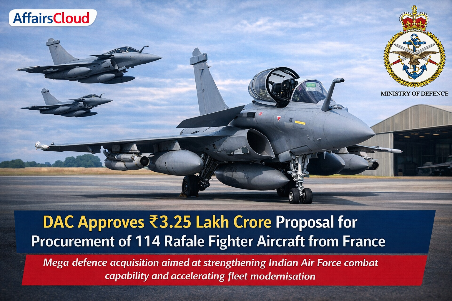 In February 2026, Defence Acquisition Council (DAC), chaired by Union Minister Rajnath Singh, Ministry of Defence (MoD), approved a proposal worth Rs.3.25 lakh crores (approximately USD 40 billion) to acquire additional 114 Rafale fighter jets from France.