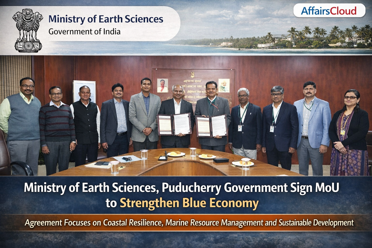 On February 12, 2026, the Ministry of Earth Sciences (MoES) signed a Memorandum of Understanding (MoU) with the Department of Science, Technology and Environment, Government of Puducherry, to strengthen marine research, coastal development, and blue economy activities in Puducherry.