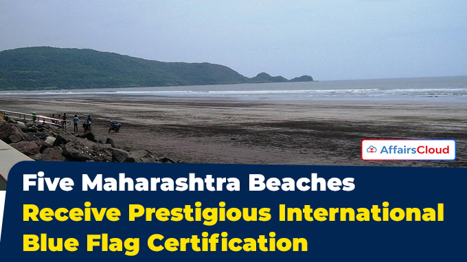 5 Maharashtra Beaches Received International Blue Flag CertificationIn October 2025, Maharashtra’s Women & Child Development (WCD) Minister Aditi Thakre announced that 5 beaches of the state received the international Blue Flag certification. This is for the 1st time that Maharashtra’s beaches are included in the list of Blue Flag.