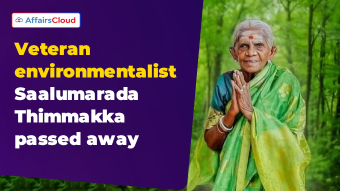 In November 2025, Renowned Environmentalist and Padma Shri awardee Saalumarada Thimmakka, famously known as “tree woman of India”, passed away at the age of 114 in Bengaluru, Karnataka. She was born on June 30, 1911 in Gubbi Taluk, Tumakuru district in Karnataka.