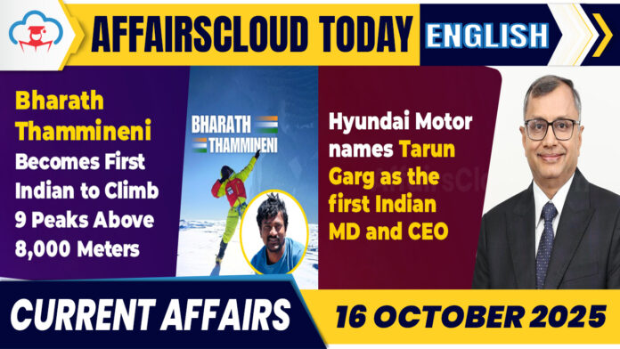 We are here for you to provide the important Recent and Latest Current Affairs 16 October 2025, which have unique updates of Latest Current Affairs 2025 events from all newspapers such as The Hindu, The Economic Times, PIB, Times of India, PTI, Indian Express, Business Standard and all Government official websites.
