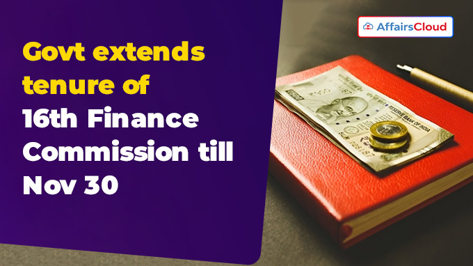 GoI Extends 16th Finance Commission Tenure till November 30, 2025In October 2025, the Government of India (GoI), announced that the tenure of the 16th Finance Commission (FC) had been extended by one month, moving its report submission deadline from October 31, 2025, to November 30, 2025.