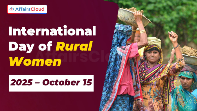 International Day of Rural Women 2025 – October 15The United Nations (UN’s) International Day of Rural Women (IDRW) is annually observed across the world on October 15 to honor the contributions of rural and indigenous women to agriculture, food security, and rural development.
