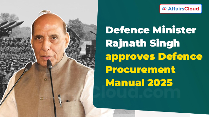 On 14 September 2025, Union Minister Rajnath Singh, Ministry of Defence (MoD), approved the ‘Defence Procurement Manual (DPM) 2025’ to streamline revenue procurement processes in the MoD and enhance the operational readiness of the Armed Forces.