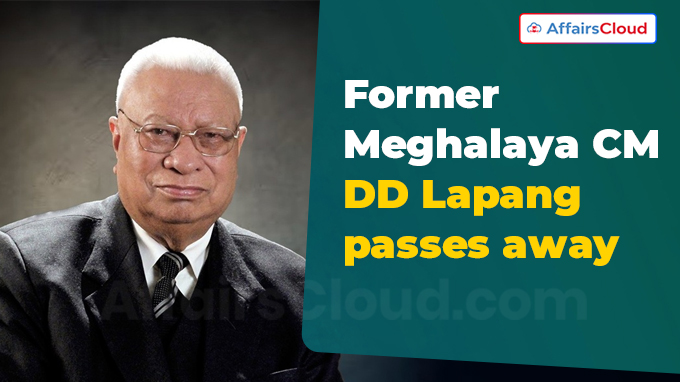 In September 2025, former Chief Minister (CM) of Meghalaya, Donwa Dethwelson (D.D.) Lapang, passed away at the age of 93 in Shillong, Meghalaya. He was born on 10 April 1932 in Meghalaya.