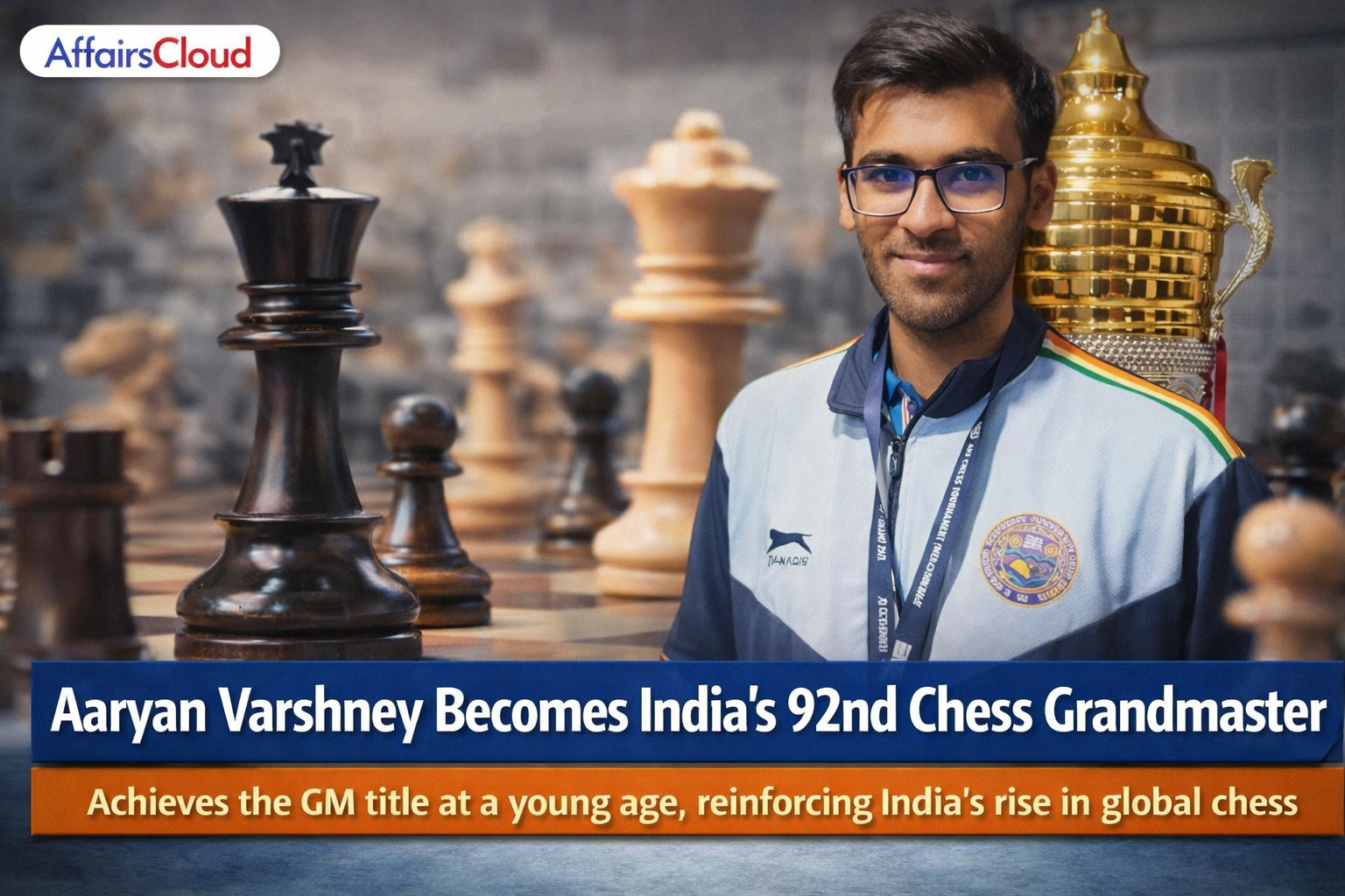 Aaryan Varshney Becomes India’s 92nd Chess Grand MasterIn January 2026, 21-year old Aaryan Varshney from Delhi , became the 92nd Indian to earn Chess Grand Master (GM) title after winning the 16th Andranik Margaryan Memorial title held from January 9 to 16, 2026 in Armenia.