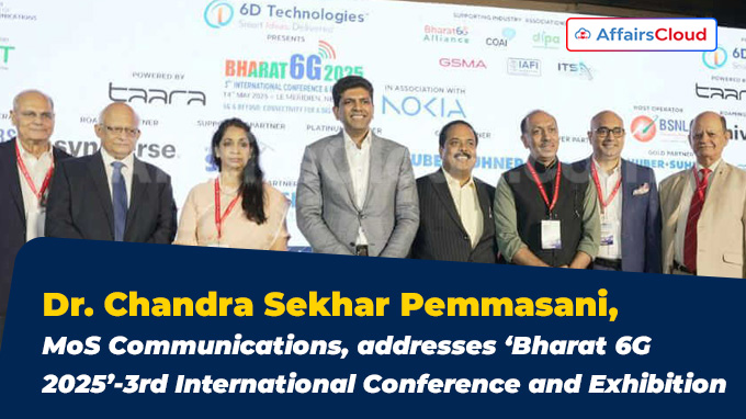 Union MoS Chandra Sekhar Pemmasani Addresses ‘Bharat 6G 2025’ in New DelhiOn May 14, 2025, Union Minister of State (MoS) Dr Chandra Sekhar Pemmasani, Ministry of Communications (MoC) and Ministry of Rural Development (MoRD) addressed the ‘Bharat 6G 2025’ – 3rd International Conference and Exhibition in New Delhi, Delhi.