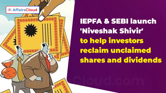 IEPFA & SEBI Launched ‘Niveshak Shivir’ to Help Investors Reclaim Unclaimed Dividends & SharesIn May 2025, the New Delhi (Delhi) based Investor Education and Protection Fund Authority (IEPFA), under the Ministry of Corporate Affairs (MCA), in collaboration with the Mumbai (Maharashtra) based Securities and Exchange Board of India (SEBI), conducted a strategic preparatory meeting in Mumbai to launch Niveshak Shivir, a nationwide initiative aimed at helping investors reclaim unclaimed shares and dividends.
