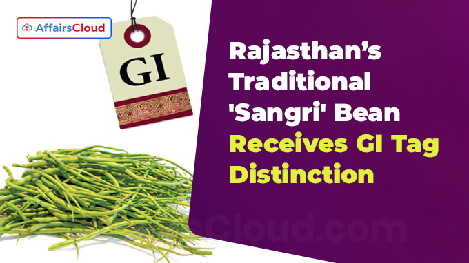 Rajasthan’s traditional ‘Sangri’ Bean Received GI Tag DistinctionIn May 2025, Chennai (TN)-based Geographical Indication Registry (GIR) under the Department for Promotion of Industry and Internal Trade (DPIIT), Ministry of Commerce and Industry (MoC&I), granted Geographical Indication (GI) tag in the agricultural products category to Rajasthan’s traditional Sangri’, the slender bean that adds unique flavor in food and is staple in every Rajasthani kitchen.