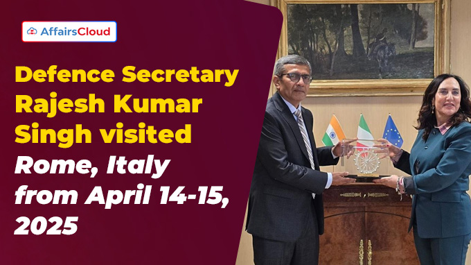 Rajesh Kumar Singh,Secretary, Ministry of Defence (MoD), visited Rome (Italy) from April 14 to 15, 2025 to bolster India-Italy strategic partnership in defence.