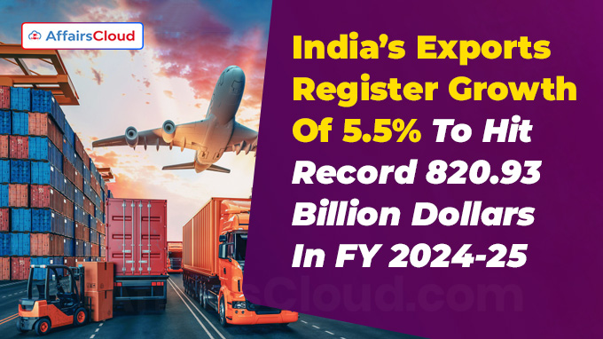 In April 2025, As per the data of Ministry of Commerce & Industry, India’s total exports (merchandise and services) during Financial Year (FY) 2024-25 is estimated at USD 820.93 Billion (bn) registering a growth of 5.50 percent from USD 778.13 bn in FY 2023-2024 .