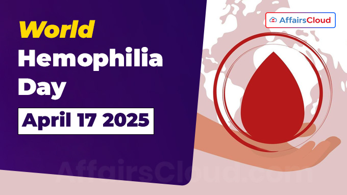 World Hemophilia Day (WHD) is annually observed on 17 April across the globe to raise awareness about Hemophilia, a rare inherited bleeding disorder, and other related disorders that affect the blood’s ability to clot. The observance is organized by the Canada-based World Federation of Hemophilia (WFH).