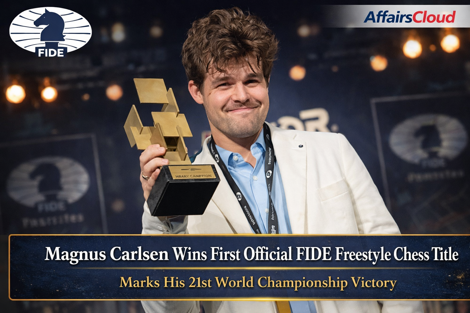 Norwegian Grandmaster (GM) Magnus Carlsen won the the first-ever International Chess Federation or Fédération Internationale des Échecs (FIDE) Freestyle Chess World Championship 2026 held in Weissenhaus, Germany from 13–15 February 2026, by defeating United States of America (USA) GM Fabiano Caruana in the final with a score of 2.5–1.5.