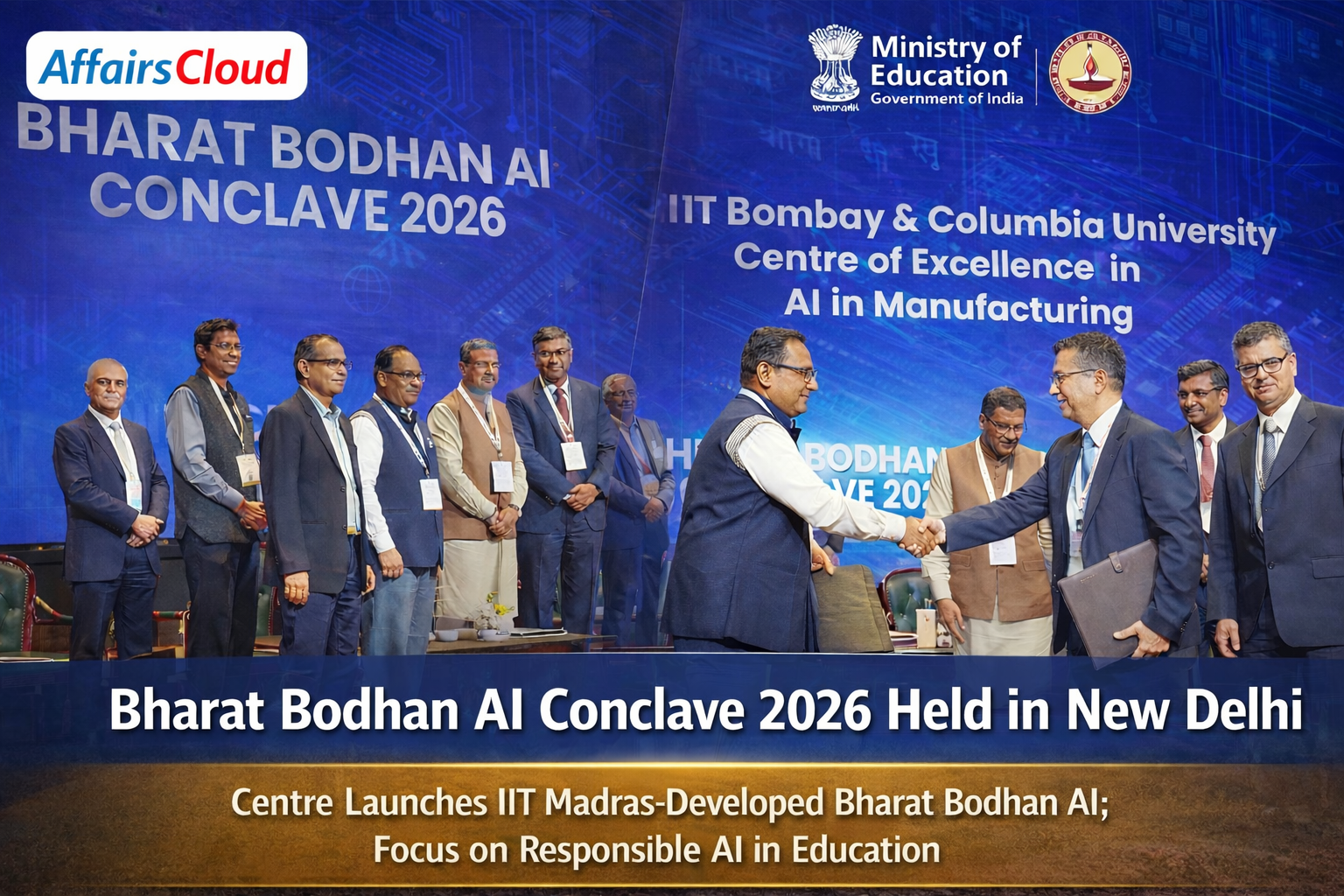 Union Minister Dharmendra Pradhan, Ministry of Education (MoE), addressed the Bharat Bodhan AI Conclave 2026 at Bharat Mandapam, New Delhi(Delhi), held from 12–13 February 2026.
