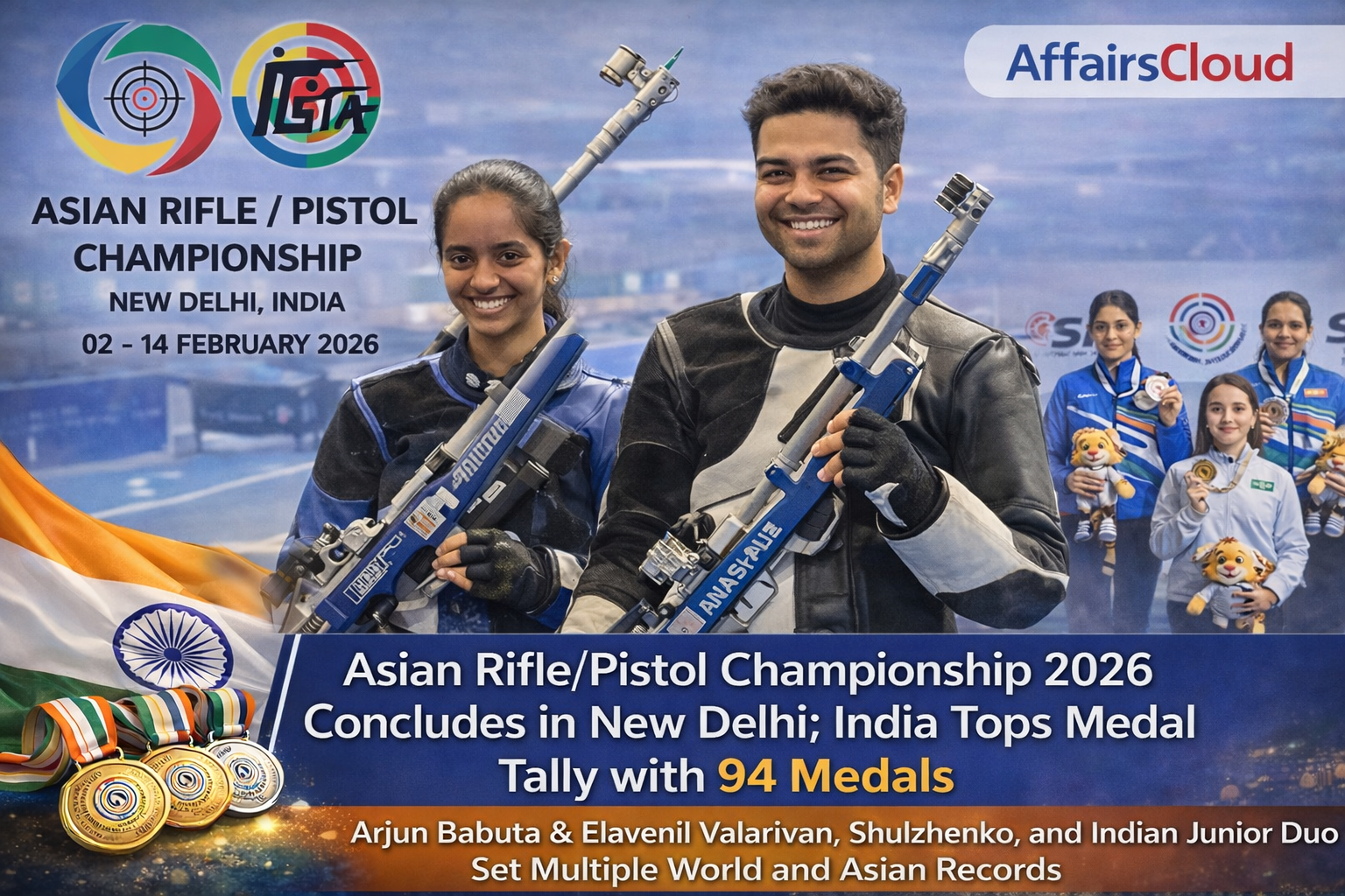 India topped the medal table for the second consecutive year with a remarkable haul of 94 medals, comprising 51 gold, 23 silver, and 20 bronze across senior and junior events at the 17th edition of the Asian Rifle/Pistol Championship 2026, held from February 2 to 14, 2026 at the Dr. Karni Singh Shooting Range in New Delhi (Delhi).