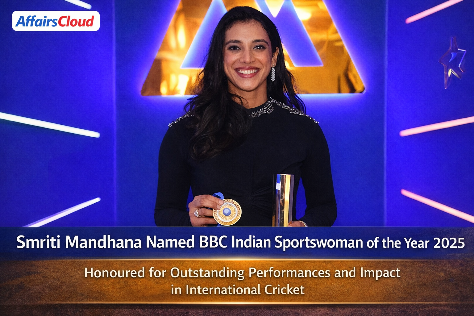- Star cricketer Smriti Mandhana was honoured with the BBC ISWOTY 2025 for playing a key role in India’s 2025 International Cricket Council (ICC) Women’s World Cup triumph with 434 runs as vice-captain and for captaining Royal Challengers Bengaluru (RCB) to their second Women’s Premier League (WPL) title.