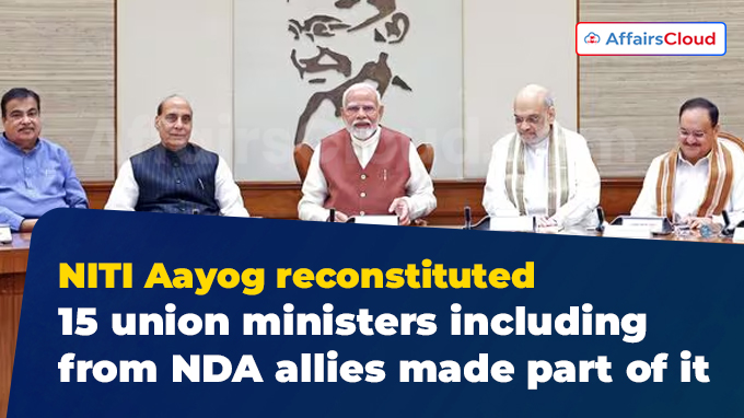 NITI Aayog Reconstituted with 4 Full-Time members & 15 Union Ministers Including from NDA Allies